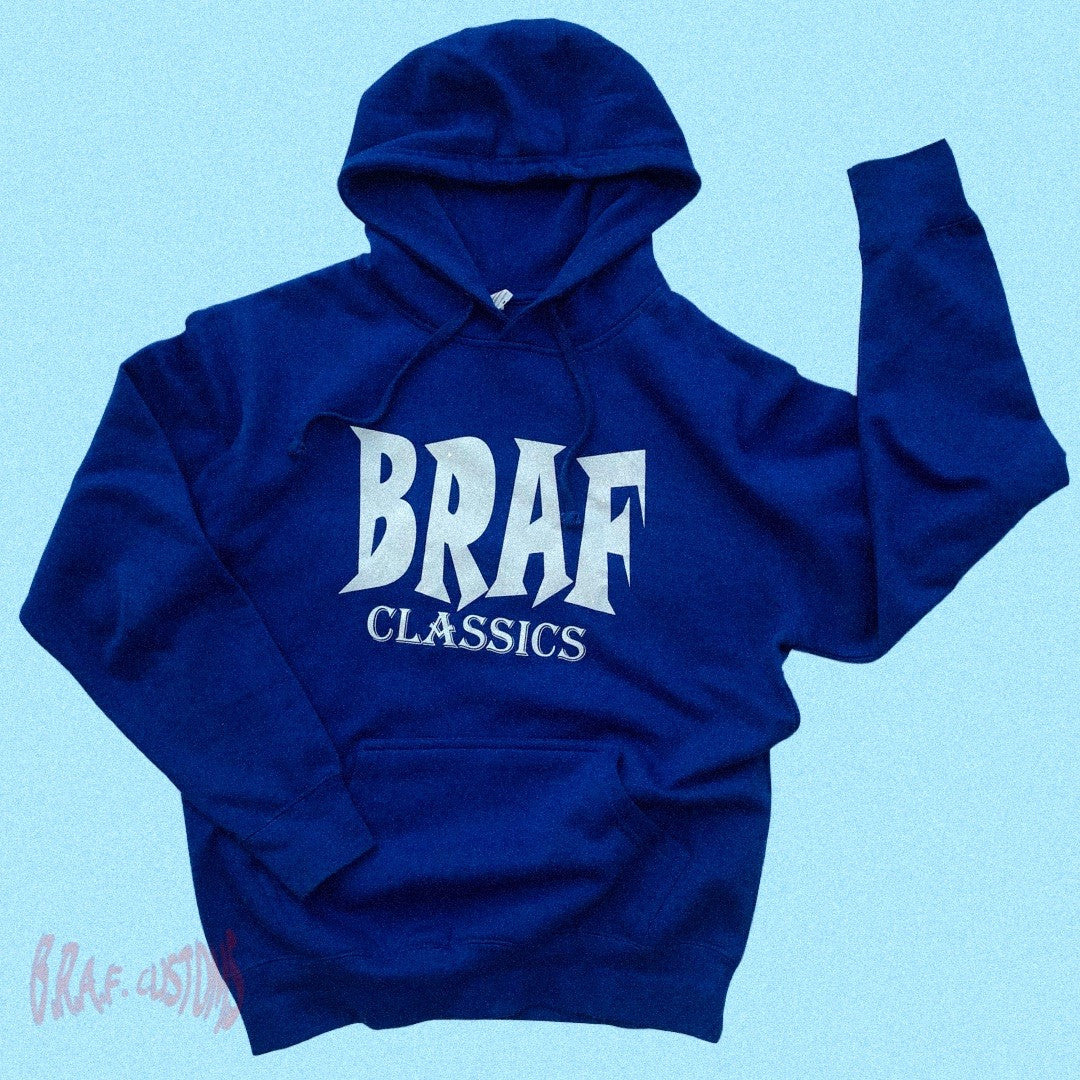 The BRAF Classic Hoodie is a timeless classic, featuring a rich royal blue color. It is designed to keep you warm and comfortable, making it a perfect addition to any wardrobe.